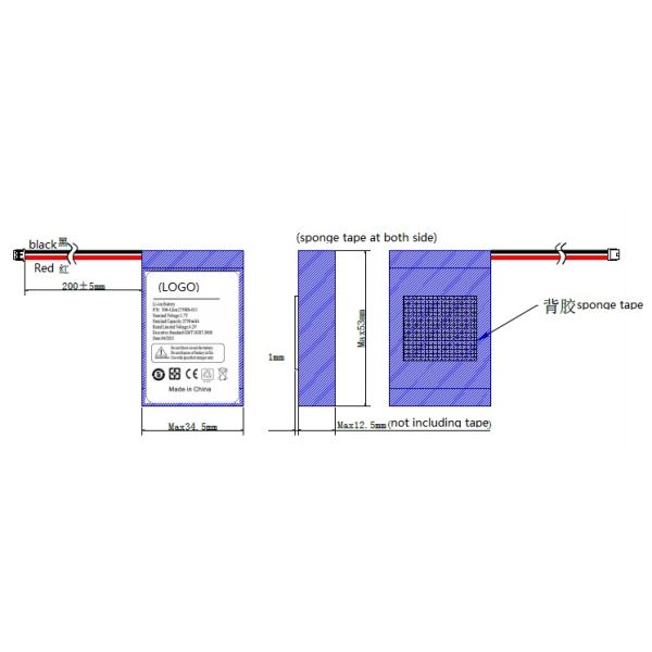 | 1 | Cell 123450 | 3.7V 2750mAh | 1 |